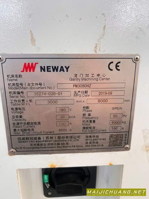 纽威PM3080HZ。工作台3X8米,门宽3.8米,门高1.6米,.