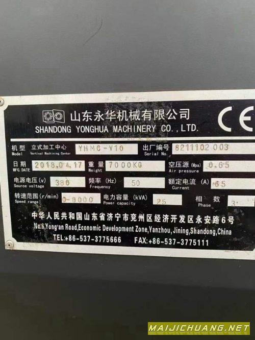 年前定有优惠:2018年永华1060加工中心,三线轨,bt40主轴8000转,发那科mf系统,带排削机,安装少用,需要联系。