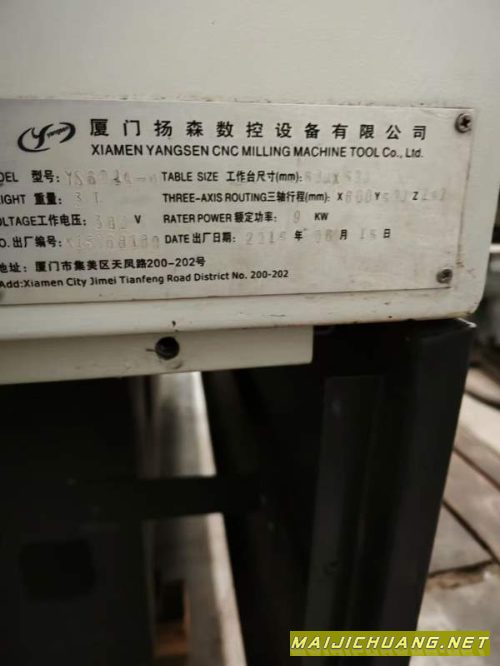 厦门扬森 YS601A-H1雕铣机,工作台mm,三轴行程X600/Y500/Z250mm,9KW大功率驱动,380V工业标准供电,轻松承接中大型板类、箱体类零件加工。