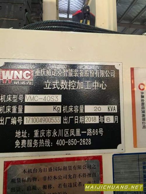 2018年出厂重庆威诺克650加工中心,三轴行程0,BT40主轴10000转,带主轴油冷,16把刀库,主轴鼻端到工作台750,发那科MF系统,后置链排,只要几万块钱!