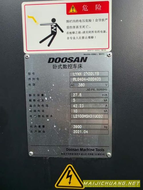 产品名称:韩国原装斗山2100Ly车铣复合,带Y轴,8寸卡盘,过棒料.
